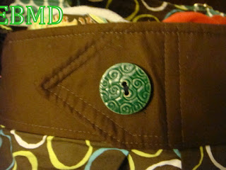 I chose the Emma diaper bag for review(it was a really hard choice!), from all the photos and going by measurements Maranda gave me I thought this would be a great ‘everyday use’ diaper bag for us and I was right! This bag is the perfect bag for having everything I need whether I am running to the grocery store or meeting up for a play date. I chose the organic Monaco Circles print and Maranda suggested the coordinating Mineral Dot (also organic material) as the interior print and the underside of the carrying strap. I requested the matching button on the outside after seeing on another bag in her shop, I love the extra detail she puts into every bag including the feminine pleats on the outside making this bag grab your attention even more.