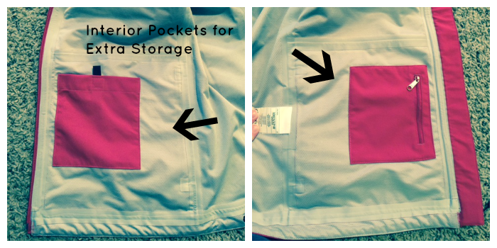 Storage: Got stuff? Don’t we all! Keys, Ipod, cell phone or work gloves are no problem for this rain jacket. There are two interior (one has velcro closure) and two exterior pockets with zip closure to keep your valuables safe. There is a convenient media port too!