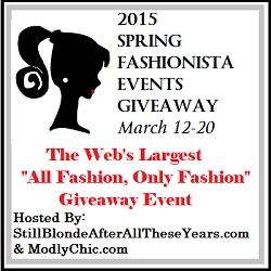 Welcome to the Spring Fashionista Giveaway Event! The event is hosted by The Chief Blonde at Still Blonde After All These Years and Katy from ModlyChic. This event is an all fashion, only FASHION event! The Largest Fashion Giveaway event on the internet with $26,000+ in prizes, 100+ participating blogs and 3/4 million entries (last event). Each individual blog has a minimum of $125 prize!